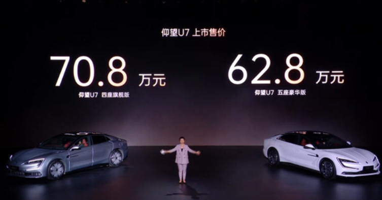 图片来源:仰望汽车官方微博3月27日,比亚迪仰望U7正式上市,新车共推出2款配置车型,四座版70.8万元、五座版62.8万元。