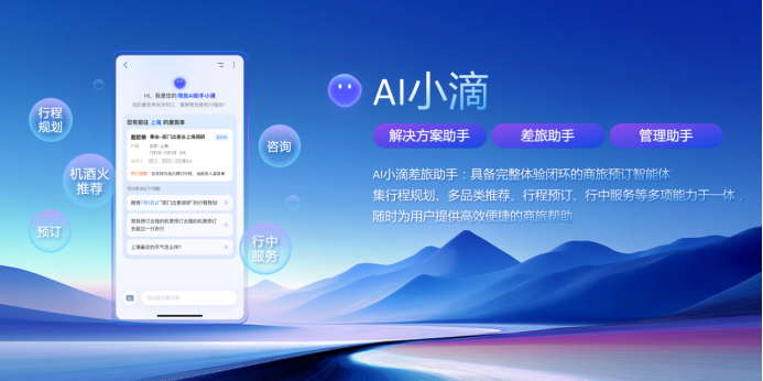 公开资料显示,作为具备完整体验闭环的商旅预订智能体,AI小滴差旅助手集行程规划、多品类推荐、行程预订、行中服务等多项能力于一体。