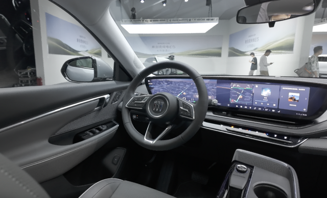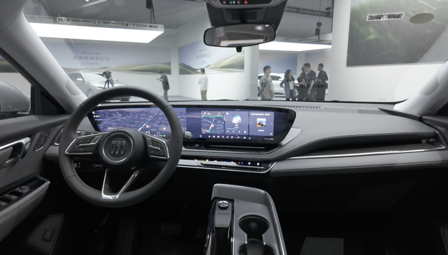 新别克纯电 E5 的内饰同样进行了全面升级。车内采用环抱式座舱设计,风格简洁大气。中控台上方配备一块大尺寸悬浮式双联屏,左侧为 12.3 英寸全液晶仪表盘,右侧是 14.6 英寸中控多媒体触控屏,显示清晰,操作流畅,为驾驶者提供丰富的车辆信息与便捷的智能交互体验。