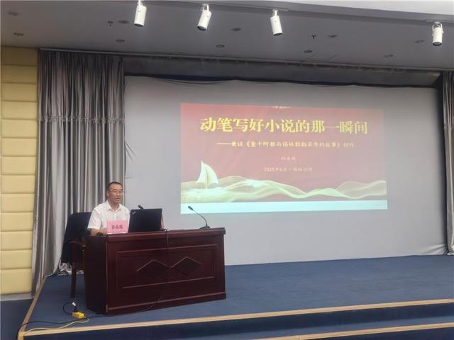 当天,在锡林郭勒职业学院,中国作家协会会员、内蒙古作家协会第九届全委会委员、自治区第十六届精神文明建设“五个一工程”奖获得者孙永斌用国家通用语言为广大学生作了一场主题为《从如何动笔写好小说》的文学分享讲座。