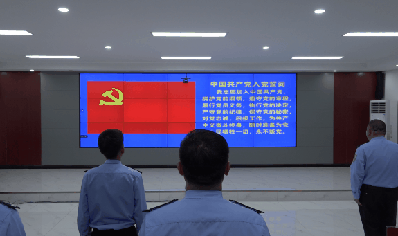 “我志愿加入中国共产党……”在鲜红的党旗前,全体党员民警在分局政委鹿喆林的领誓下,高举右拳,重温入党誓词。字字千钧的誓言响彻会场,让每一位党员回溯入党初心,进一步坚定理想信念,强化为共产主义事业奋斗终身的责任感与使命感。