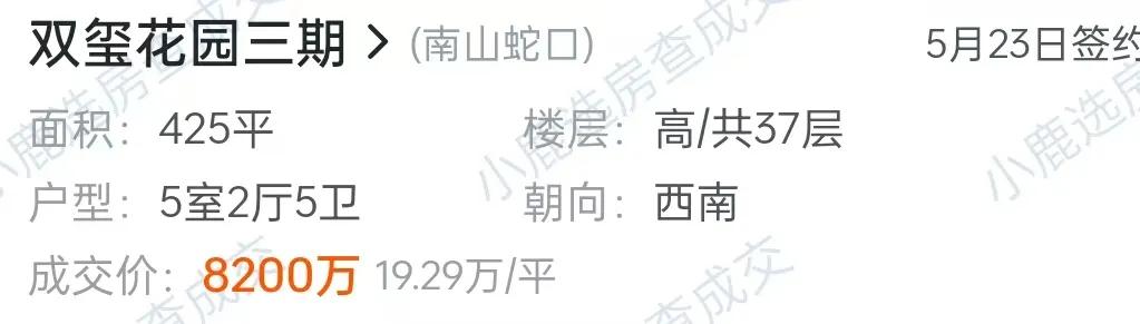 近日,深圳南山双玺三期一套425平超高层以8200万成交,在豪宅圈刷屏。