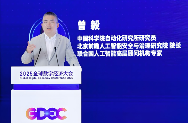 中国科学院自动化研究所研究员、北京前瞻人工智能安全与治理研究院院长、联合国人工智能高层顾问机构专家曾毅发表主旨演讲