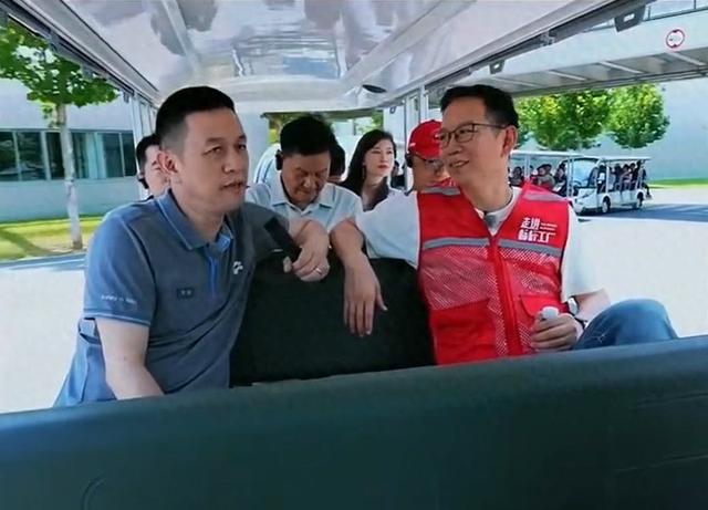 李斌(左)参加蔚来工厂直播活动 蔚来