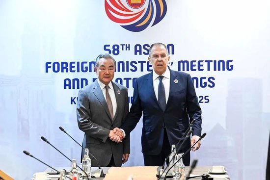 2025年7月10日,中共中央政治局委员、外交部长王毅在吉隆坡会见俄罗斯外长拉夫罗夫。