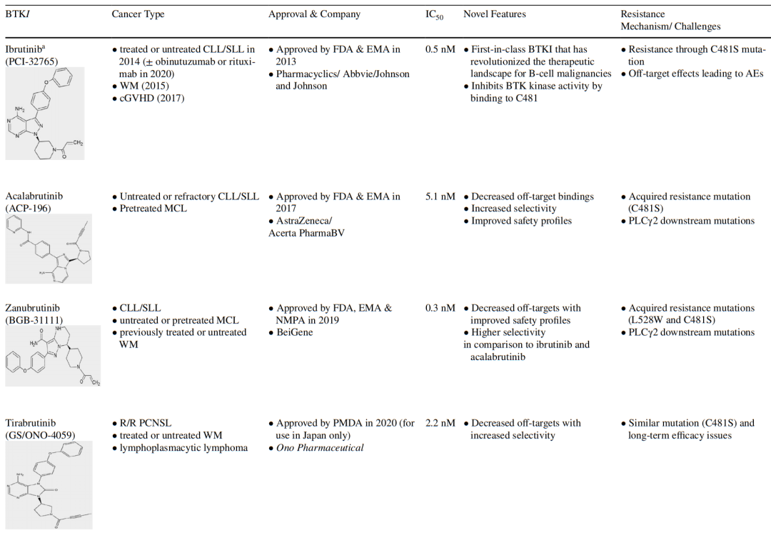 Tian G, Chen Z, Wang B, Chen G, Xie L. Small-molecule BTK inhibitors: From discovery to clinical application. Bioorg Chem. 2025 Apr;157:108242.