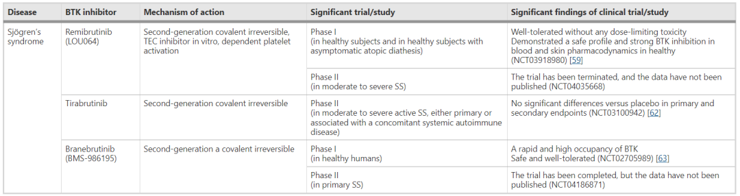 表10 干燥综合征临床前和临床试验中测试的BTKIs