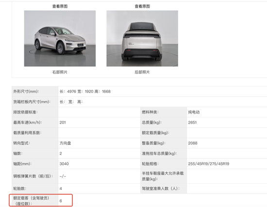 7月16日,工信部发布了《道路机动车辆生产企业及产品公告》(第397批)的车辆新产品公示清单,特斯拉纯电动多用途乘用车名列其中,该车型产品型号为TSL6500BEVBA0,为六座车型。