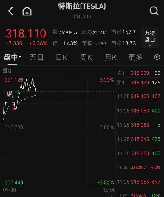 7月16日晚,特斯拉股价盘初走高。