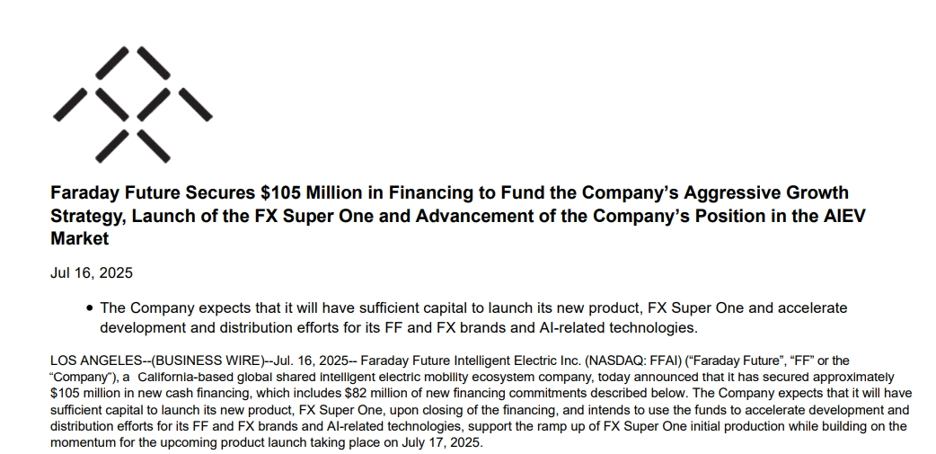 法拉第未来在最新公告中表示:“公司将继续秉持‘股东至上’原则,并致力于最大化长期股东价值。”