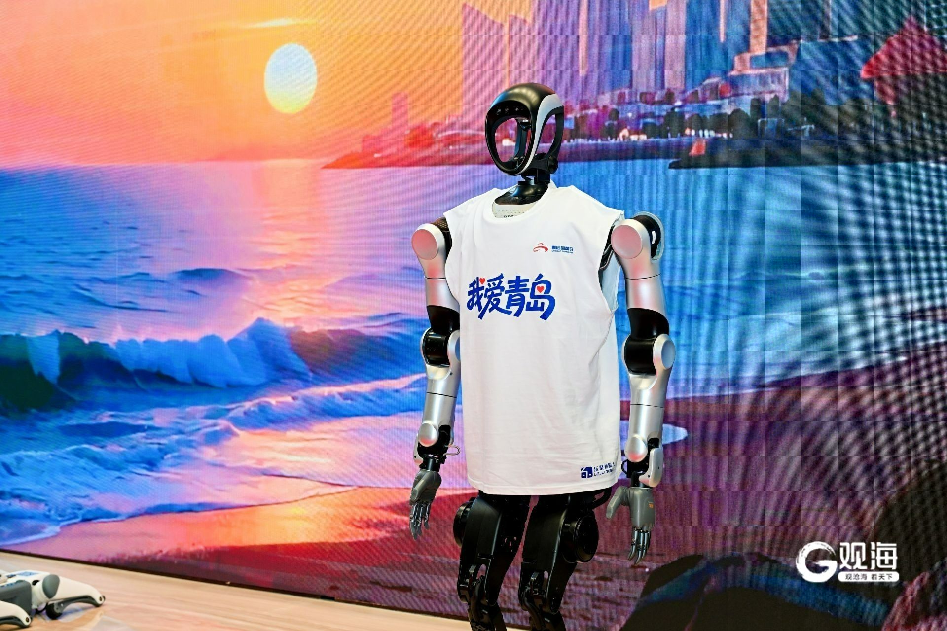 机器人在青岛品牌日启动仪式现场“迎宾”。