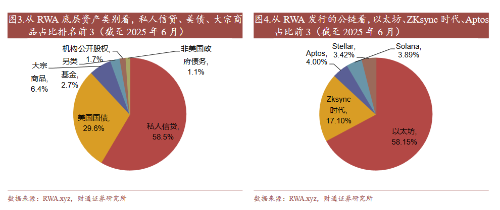 RWA项目主要发行在以太坊(市场份额58.2%)、ZKsync和Aptos等公链上。