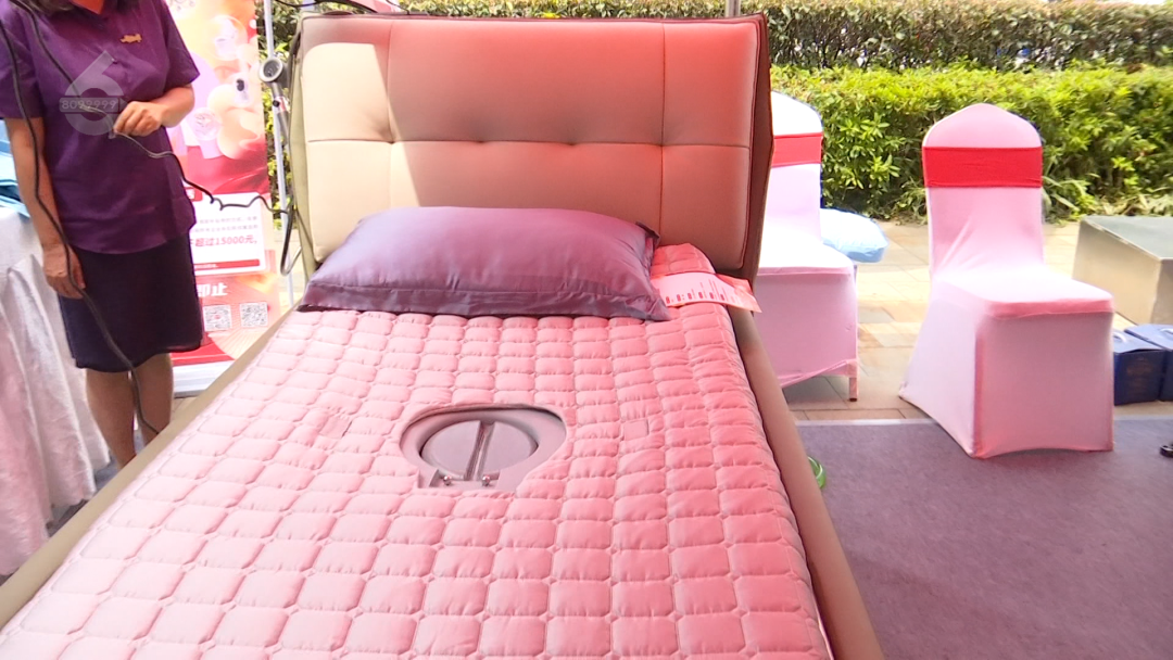 销售人员:“它帮助失能老人解决一个大小便的问题,减轻护理家庭和护理人员的(压力)。它可以翻身起卧,解决任何问题,防褥疮、洗澡全在这个床上都能解决,我们只要一点它的感应,就立马会打开整个系统,让大小便就在这里解决了。另一个是臭味,它有排风系统 ,它会往外排 ,我们是有管道的,然后冲洗、风干,一次性就完全(解决),就不用家里面的护理员和家庭的成员为这个小便的问题烦恼了。然后我们这个(床)是防褥疮的,可以设定20分钟或者10分钟的翻身起卧运动。”