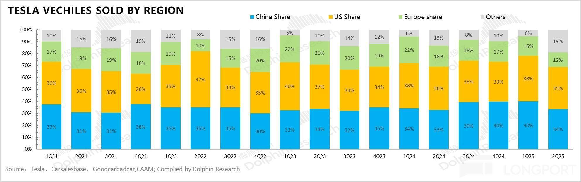 ③ 欧洲市场:欧洲市场特斯拉的表现也相对一般,之前一季度受到了马斯克的政治活动引发的品牌价值损伤,这对欧洲影响尤为显著,因为企业车队买家占欧洲销量比例较高。