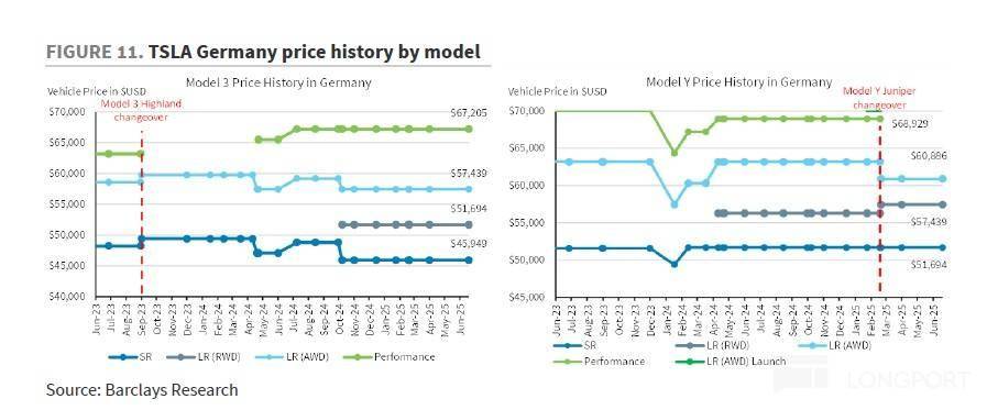 c. 欧洲地区:二季度特斯拉在欧洲对model Y不同版本的车型有涨价也有降价;