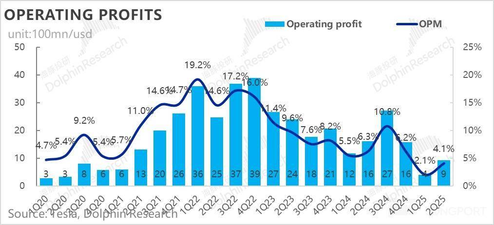 本季度单车可变成本3.22万美元,环比上行1000美元,仍然主要受到关税影响(二季度关税成本增加3亿美元,其中2亿美元体现在本季度卖车可变成本上,相当于负面拖累卖车成本520美元)