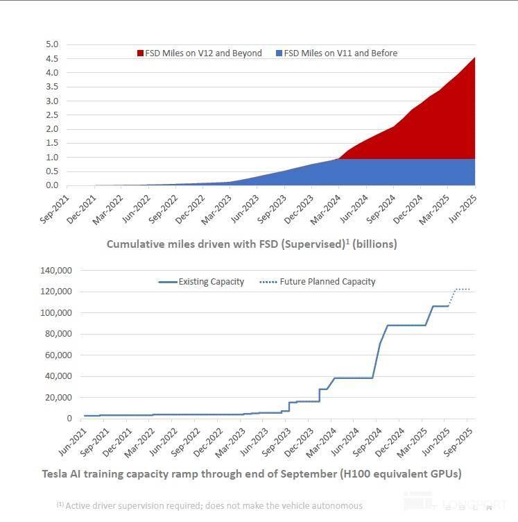 市场仍然在期待软件端的FSD 14.0版本以及硬件端的HW5.0版本, 而HW 5.0(最新叫AI 5)版本的硬件算力预计达到了2000+ TOPS以上,而相对于现有模型,其支持的FSD 14.0版本的模型参数将达到现在数倍,预计其性能表现会再次跃升一个台阶,从而带动FSD渗透率的提升,以及Robotaxi的继续扩展。
