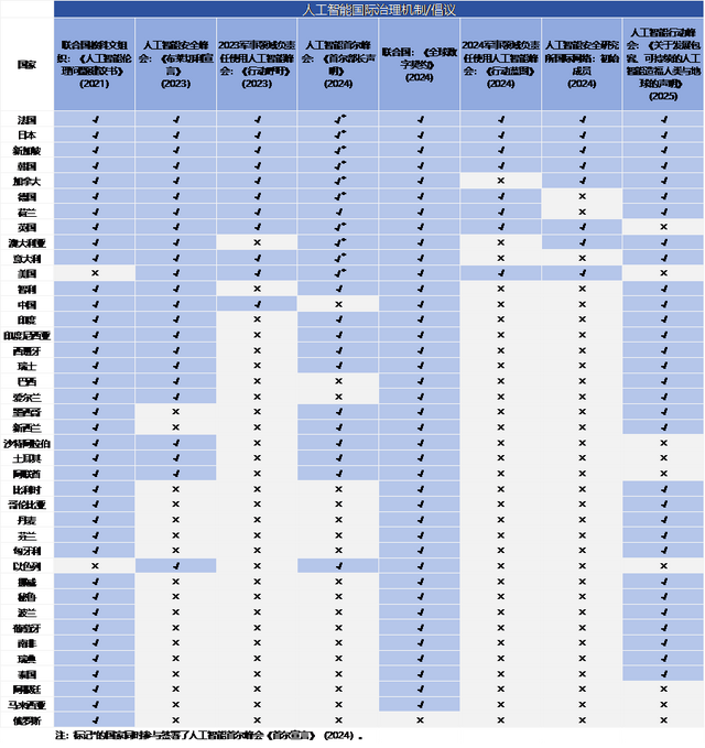 表2 各国参与国际AI治理机制概况