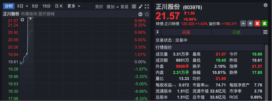 另外,医疗器械板块也持续走高。A股正川股份、康泰医学双双涨停,南微医学涨超10%,鹿得医疗、山东药玻、安杰思、锦好医疗、迈普医学等跟涨。