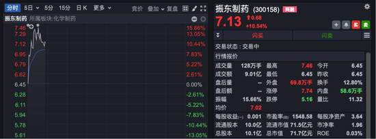 创新药板块再度活跃。振东制药涨超10%,该股3天内累计涨超40%。三元基因涨超8%,塞力医疗、康龙化成、哈三联跟涨。