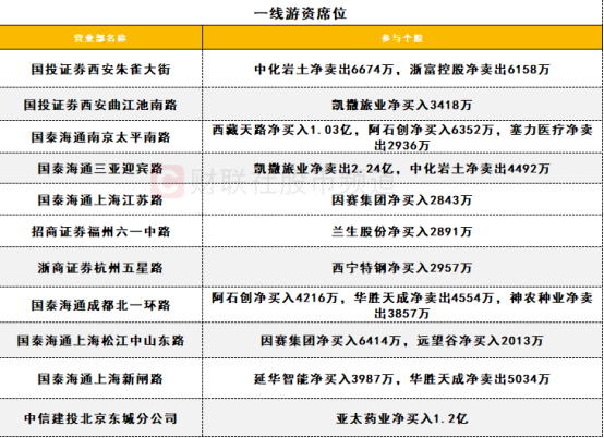一线游资活跃度有所下降,海南自贸区概念股凯撒旅业遭国泰海通三亚迎宾路营业部净卖出2.24亿;亚太药业获中信建投北京东城分公司营业部净买入1.2亿;西藏天路获国泰海通南京太平南路营业部净买入1.03亿。