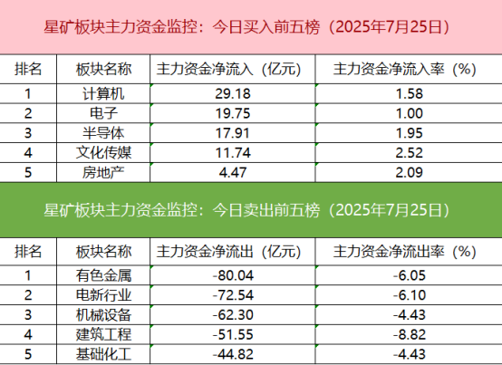 板块资金流出方面,有色金属板块主力资金净流出居首。