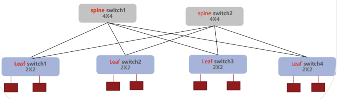 现在数据中心的组网也比较复杂,我们用的AI集群里面最简单的要求就是任意两个GPU之间或者服务器之间必须得有一条通路,这样才能够满足数据交换,可以看一下示意图,其中红色部分是GPU,上面有一层交换机,分别把GPU连起来,连成一个小的集群,再由上面的交换机把各交换机连接起来,这样下面的GPU可以连成一个集群,如果还要进一步扩展GPU的规模,就可以在上面再加第三层交换机,叫作核心交换机,这样就可以把GPU连成一个比较大的集群。