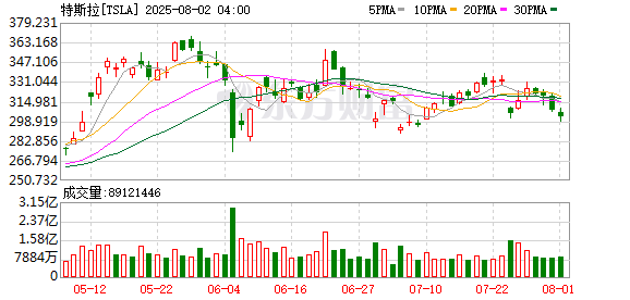 特斯拉股价8月1日下跌1.83%,收于302.63美元/股。今年以来,特斯拉累计跌幅达到25.06%,在美股大型科技公司中跌幅居前。
