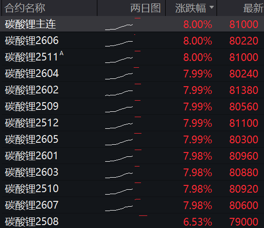 碳酸锂期货所有合约价格大涨,碳酸锂期货主力合约一字涨停。
