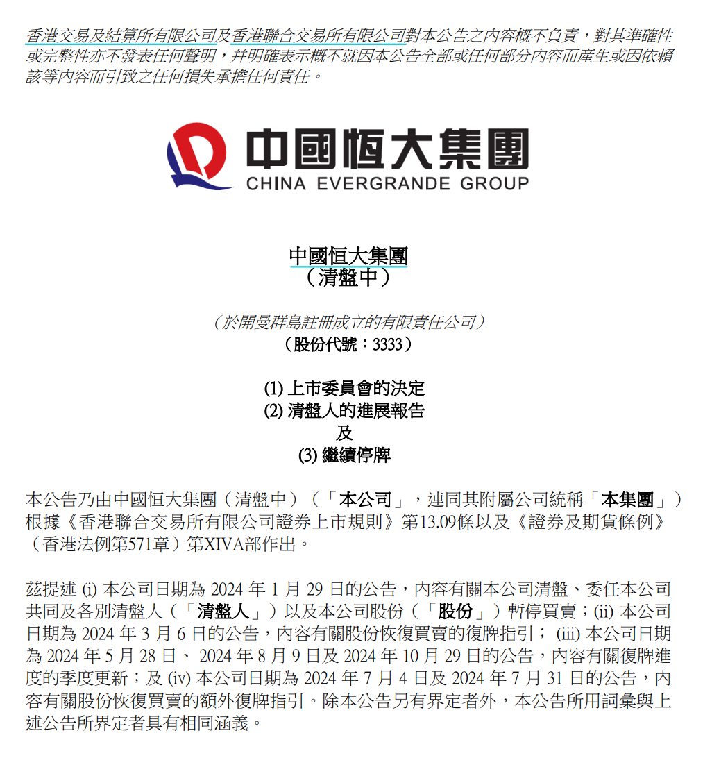 8月12日晚,中国恒大公告称,公司将被取消上市地位。