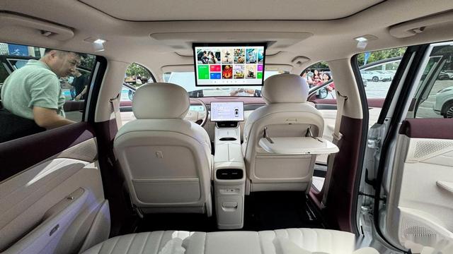 其座舱舒适性堪称一绝,座椅采用 10 层结构设计,泡沫密度超出行业平均水平 40%,获得中汽研 “座椅舒适之星” 权威认证。主驾驶座椅有 24 种按摩模式、三档通风加热功能等,能有效缓解驾驶疲劳。此外,车内还配备了同级唯一的后排冷暖箱、15.6 英寸 2.5K 高清吸顶屏、航空级小桌板和 19 扬声器全景声音响系统等,营造出了豪华舒适的驾乘氛围。