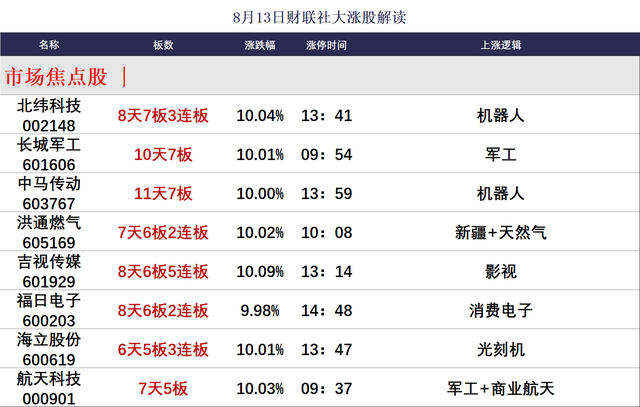 财联社8月13日讯,今日92股涨停,28股炸板,封板率为77%,吉视传媒、福日电子8天6板,万通发展、新疆交建4连板,长城军工10天7板,中马传动11天7板,洪通燃气7天6板,海立股份6天5板,航天科技7天5板。市场全天震荡走高,沪指突破去年10月8日高点,创近4年新高。沪深两市全天成交额2.15万亿,较上个交易日放量2694亿,时隔114个交易日重回2万亿上方。盘面上,市场热点较为杂乱,个股涨多跌少,全市场超2700只个股上涨。板块方面,有色金属、PEEK材料、CPO、光刻机等板块涨幅居前,煤炭、银行、港口、物流等板块跌幅居前。截至收盘,沪指涨0.48%,深成指涨1.76%,创业板指涨3.62%。