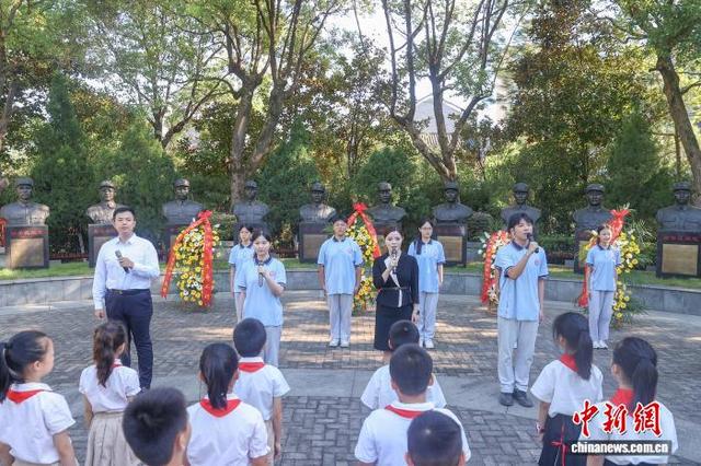 中新网南昌8月15日电(卢梦梦)“当你翻开书本,认识英雄两个字,你会想到什么?当你站在纪念碑前,读到英雄两个字,你会看到什么?……”15日上午,江西南昌新四军军部旧址陈列馆内,数十名讲解员与志愿者在园林广场上深情朗诵着诗歌《英雄》。广场旁,青砖黛瓦的建筑群掩映在郁郁葱葱的树木间,无声诉说着“铁军”诞生的故事。