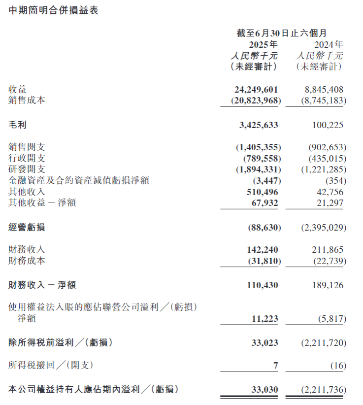 8月18日周一,零跑汽车发布截至2025年6月30日止六个月的财务业绩,具体来看: