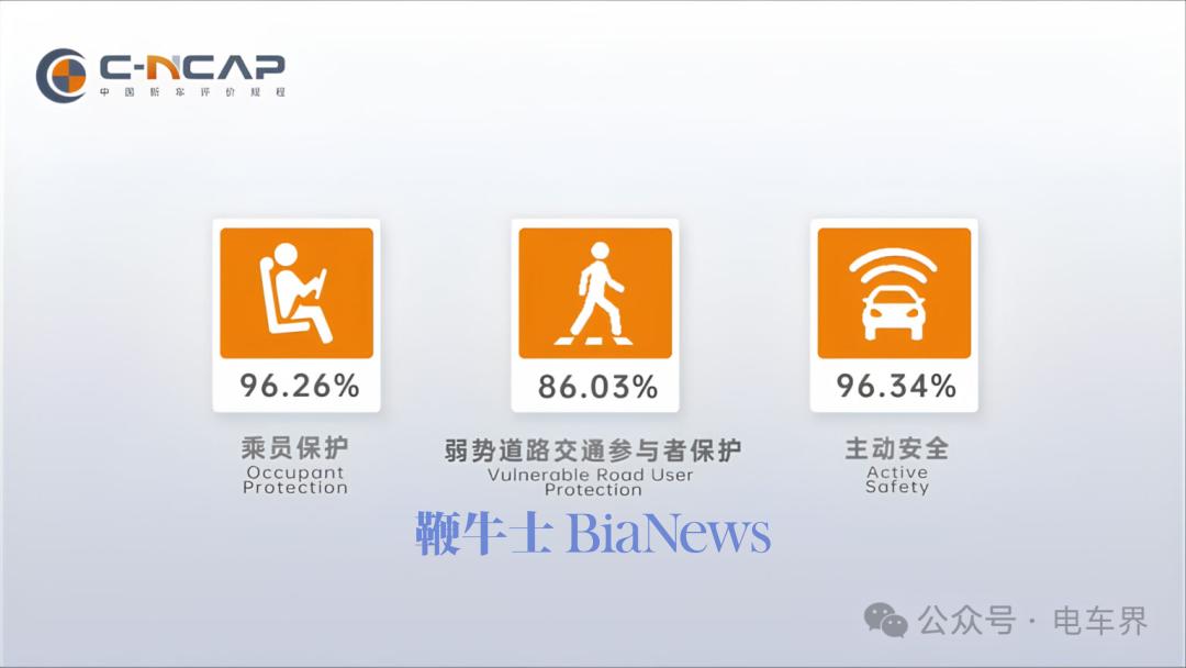 主动安全得分率高达96.34%,较C-NCAP历史平均水平高出9.99%,其中自动紧急制动(AEB)和灯光效能测试接近满分。
