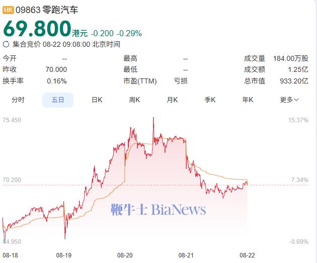 在消息传出后,零跑股价午后涨超4%,市值暴涨40亿元,一度创下历史新高。根据花旗最新研报,其对零跑汽车开启90天上行催化剂观察,基于销量、毛利率、净利润的上调,目标价从86.4港元上调至100港元,评级“买入”。
