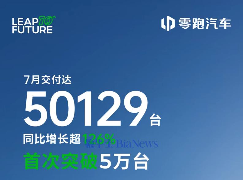 在销量层面,今年上半年,零跑汽车总交付量为221,664辆,位居中国新势力品牌销量榜首,较2024年同期交付量增长155.7%。7月零跑月销量首度突破5万辆,已经连续5个月位居中国新势力品牌月销量榜首。