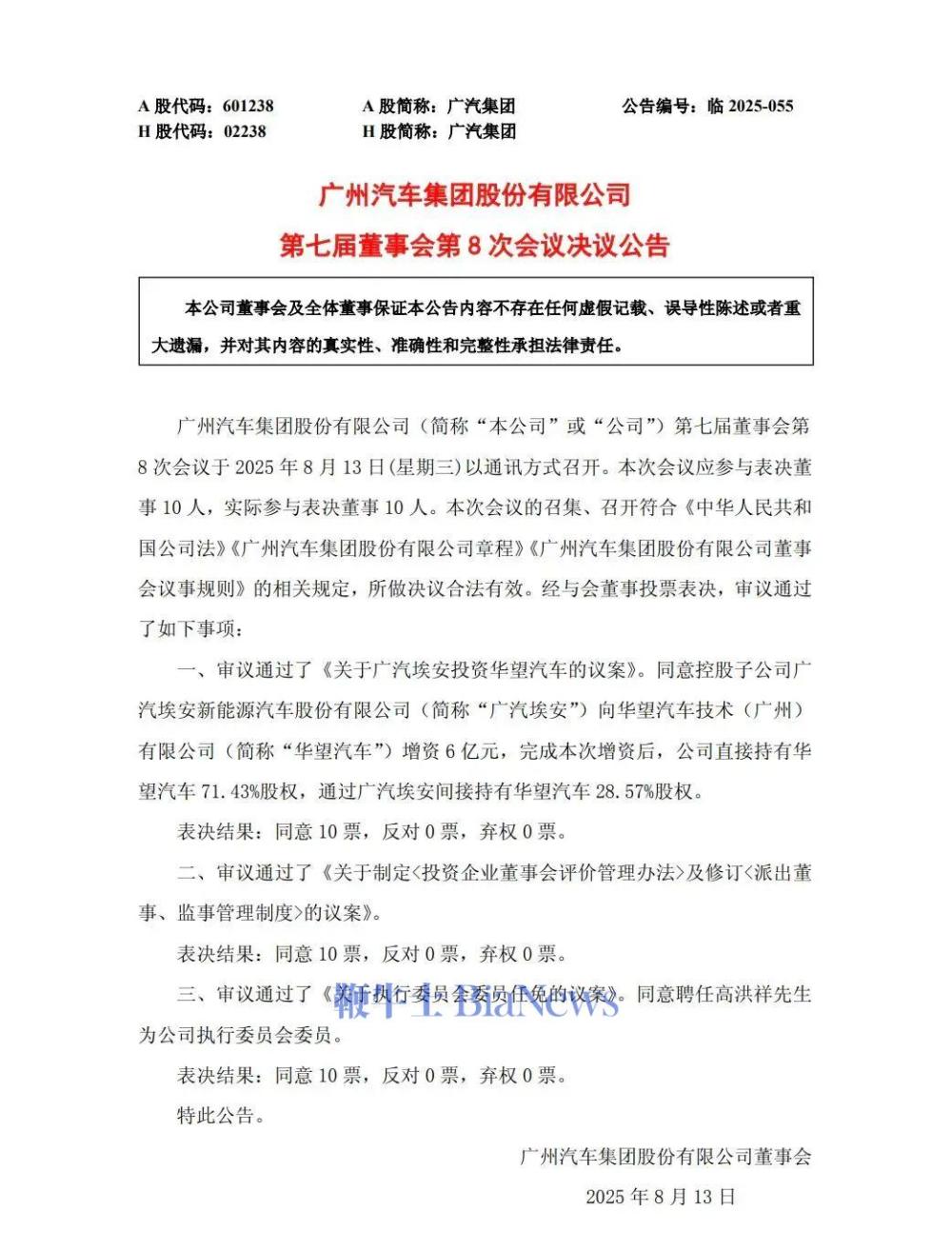在此之前的8月8日,广汽集团召开了华望项目开发攻关动员会,官方称“华望成,将助广汽更进一程”,并强调这场攻坚之战“必以实干作答”。