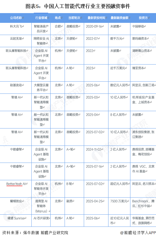 5、人工智能代理行业投资者主体呈现国资、产业、VC分层分布特征