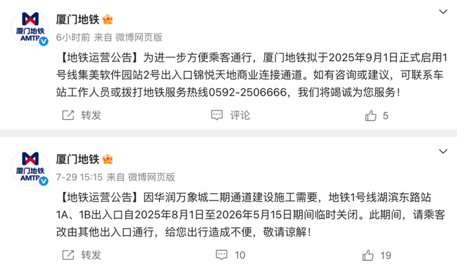 为进一步方便乘客通行,厦门地铁拟于2025年9月1日正式启用1号线集美软件园站2号出入口锦悦天地商业连接通道。