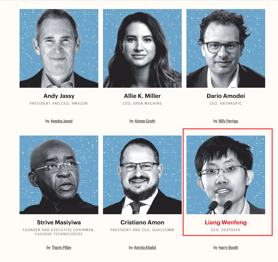 每经AI快讯,8月29日,《时代》周刊发布了2025年度AI领域最具影响力的100人名单。其中,DeepSeek CEO梁文锋、华为创始人任正非、宇树科技CEO王兴兴、小马智行CEO彭军等中国企业家入选。