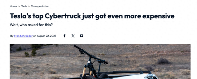 从理论上讲,这一套餐本身仍具有一定的性价比。但问题在于,Cybertruck整体表现只能称得上平庸。相比之下,特斯拉其他车型中的全自动驾驶选装价格为8,000美元。更令人不解的是,尽管Cybertruck销售表现不佳——特斯拉虽未公布具体数据,但估计2025年第一季度仅交付6,406辆——埃隆·马斯克仍坚持推进此项定价策略。