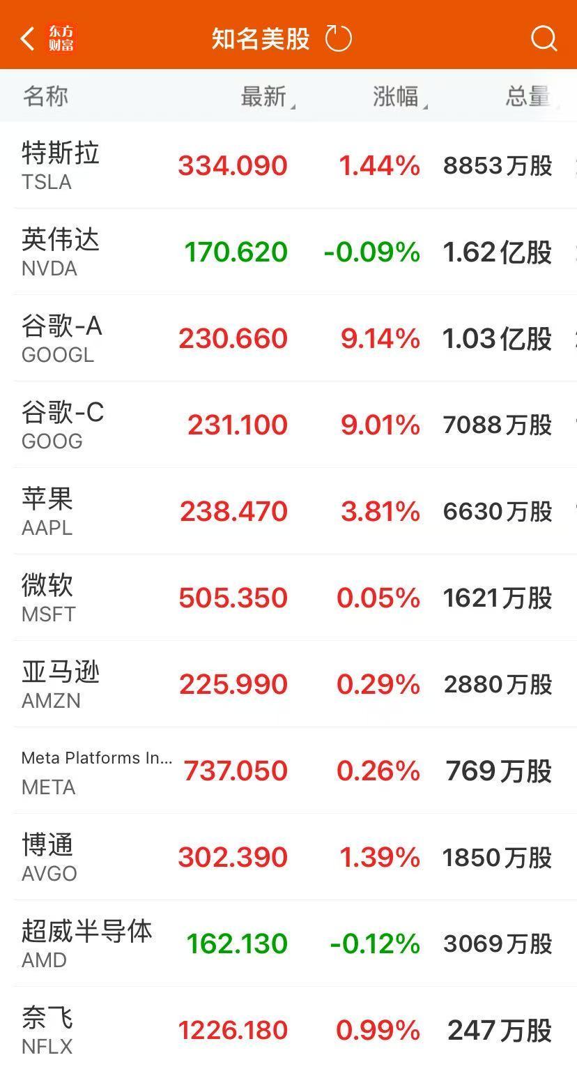 谷歌A涨9.14%(市值一夜增加2334亿美元,约合人民币1.666万亿元),谷歌C涨9.01%,双双收于历史新高,由于谷歌不是道指成分股,导致该指数表现不如标普和纳指。