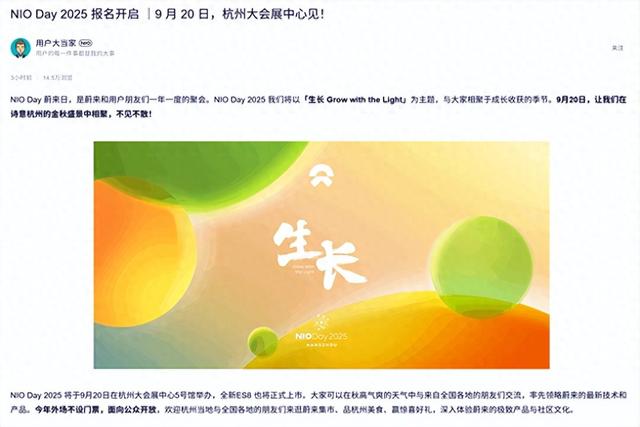 蔚来表示,NIO Day蔚来日,是蔚来和用户朋友们一年一度的聚会,本届NIO Day主题为“生长 Grow with the Light”。