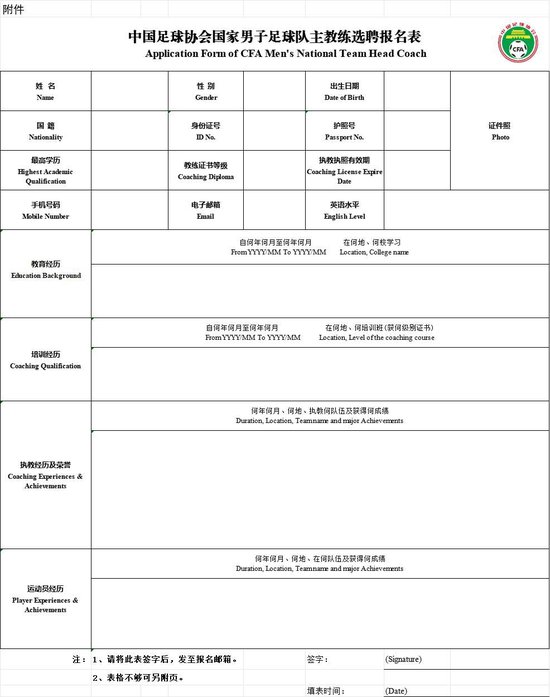 新京报讯 9月5日,中国足球协会发布关于公开选聘国家男子足球队主教练的公告,详情: