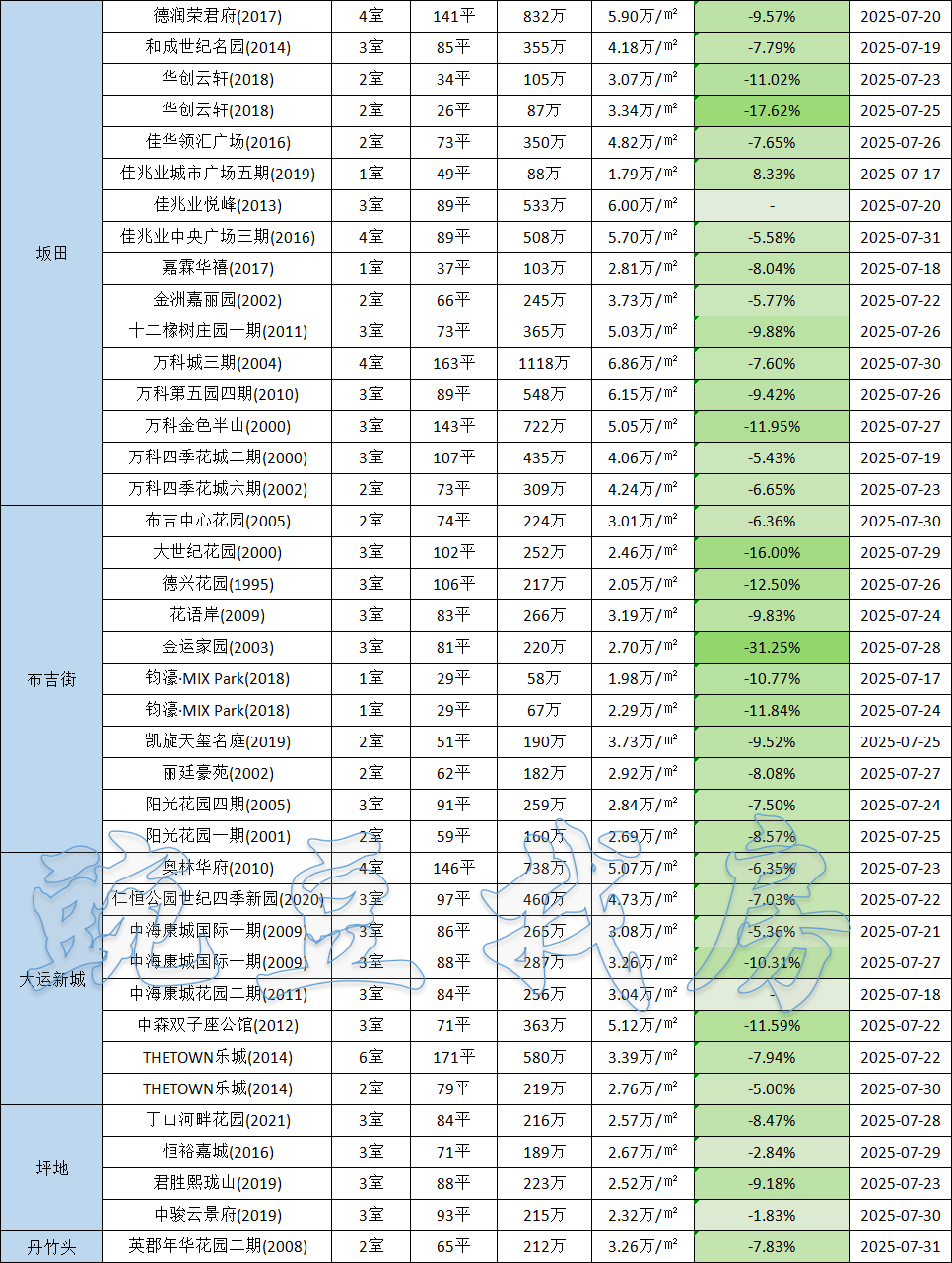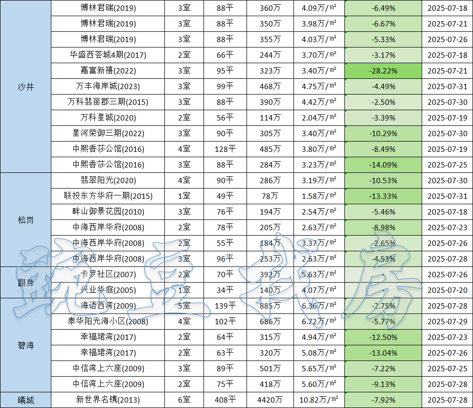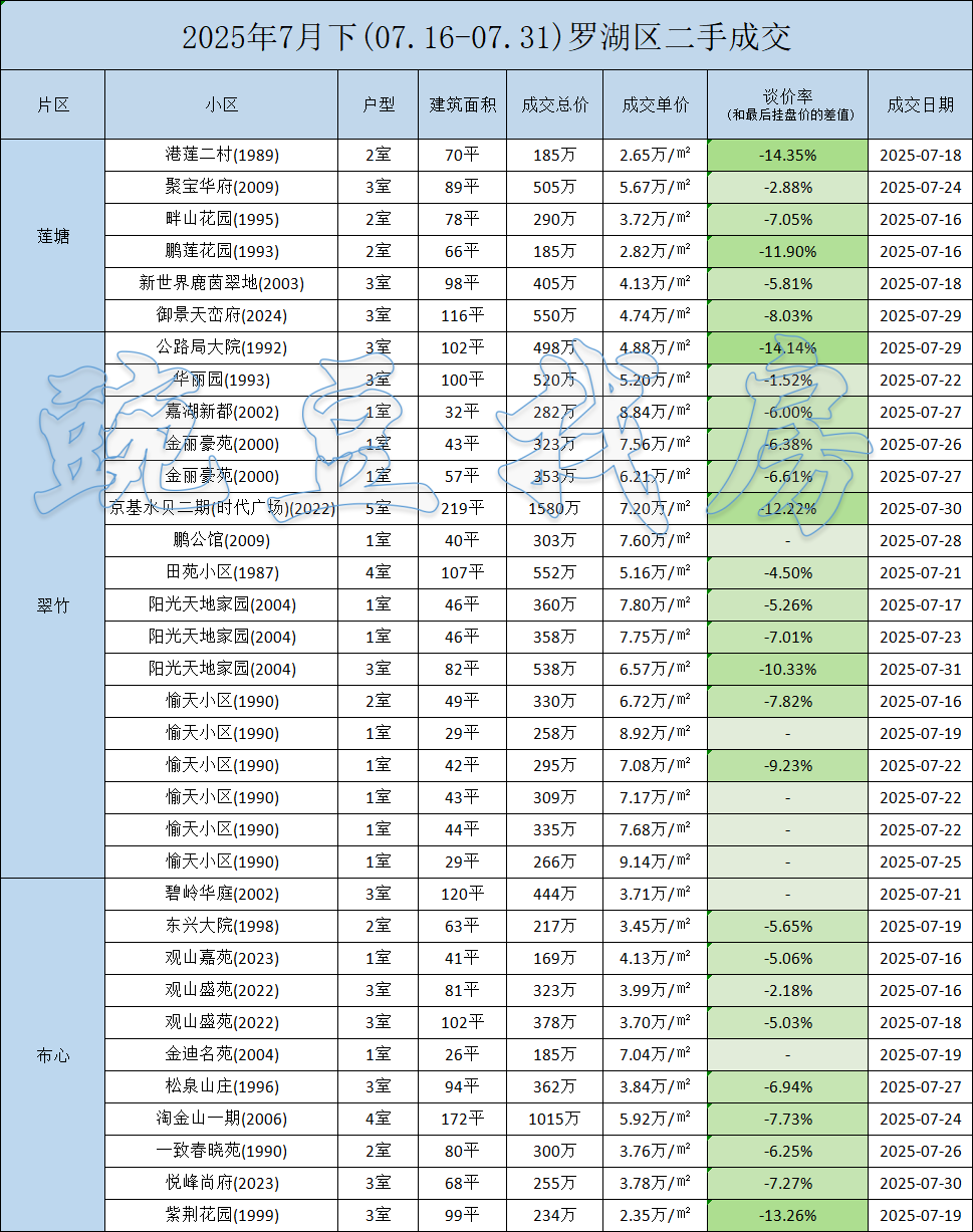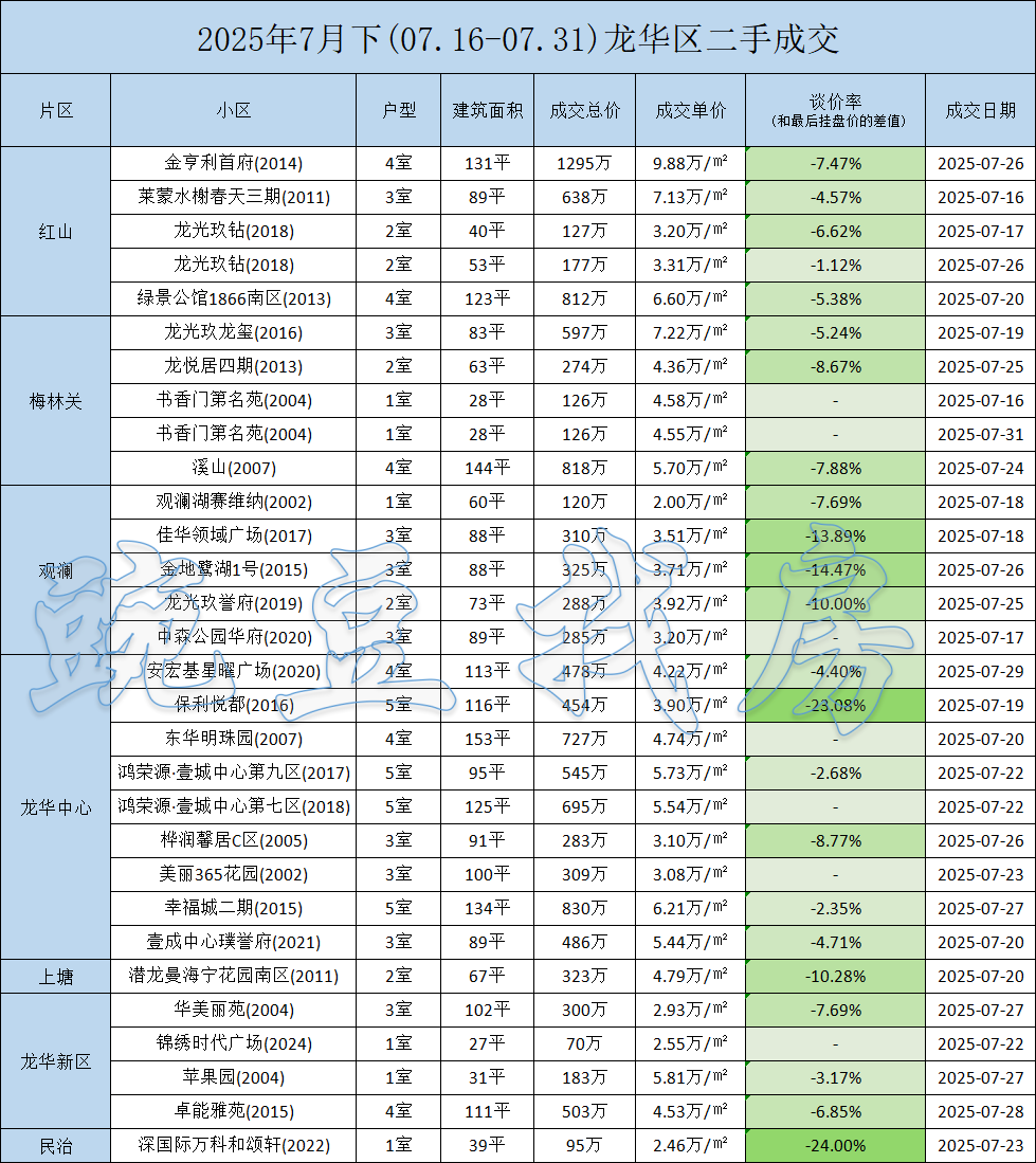 七月下旬深圳二手房市场持续降温,多个区域价格出现松动,尤其是龙岗区多盘领跌,成为这一轮行情中备受关注的“价格洼地”。