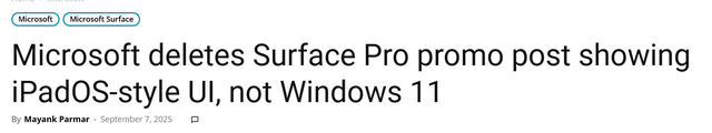 【环球网科技综合报道】9月8日消息,据外媒Windows Latest报道,在微软 Surface 团队发布的新宣传片中,Surface Pro 屏幕看起来就像 iPadOS 的翻版。