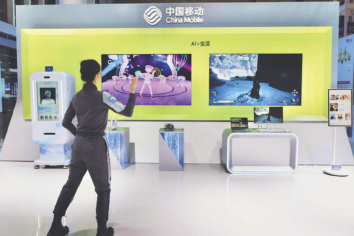在中国移动展区,观众得以近距离体验AI如何重塑生产、生活与治理模式。