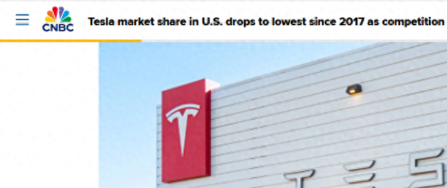 【环球网科技综合报道】在全球电动汽车市场竞争日益激烈的当下,曾经风光无限的特斯拉在美国市场正遭遇前所未有的挑战。9月9日消息,根据研究机构考克斯汽车公司提供给路透社的数据显示,8月特斯拉在美国电动汽车总销量中的占比降至38%,这是自2017年10月以来首次跌破40%大关。要知道,特斯拉曾占据美国电动汽车市场80%以上的份额,如今却风光不再。