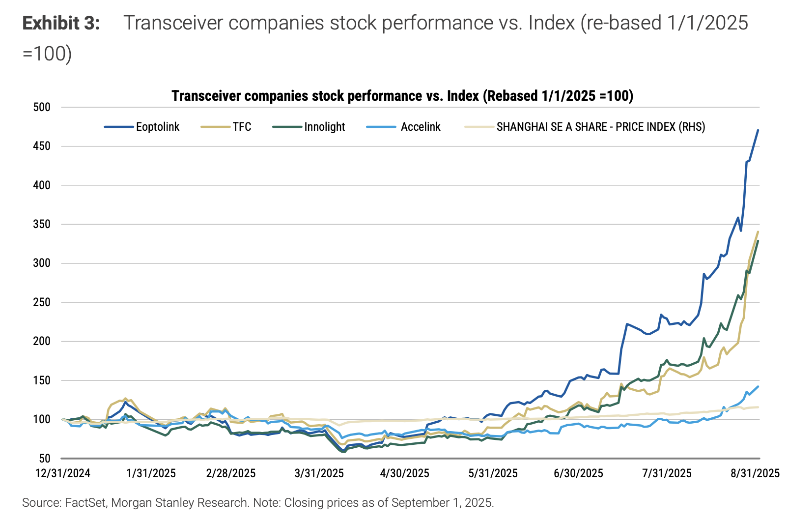经过数月大幅上涨后,摩根士丹利认为光模块行业的基本面利好已基本反映在股价中,该机构对多只光模块相关股票进行了评级调整。